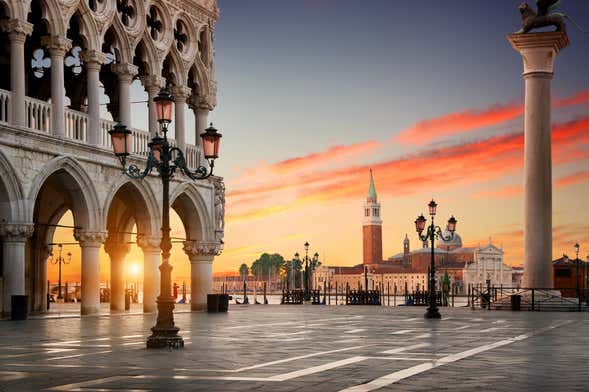 Nesta emblemática esplanada, conheceremos os monumentos que a tornam única, começando pela Basílica de São Marcos, uma joia arquitetônica de estilo bizantino e mosaicos dourados, e seu elegante campanário. Ao lado desse templo encontra-se o Palácio Ducal, uma imponente estrutura que abrigava a sede do governo veneziano e que atualmente foi reconvertida em museu.